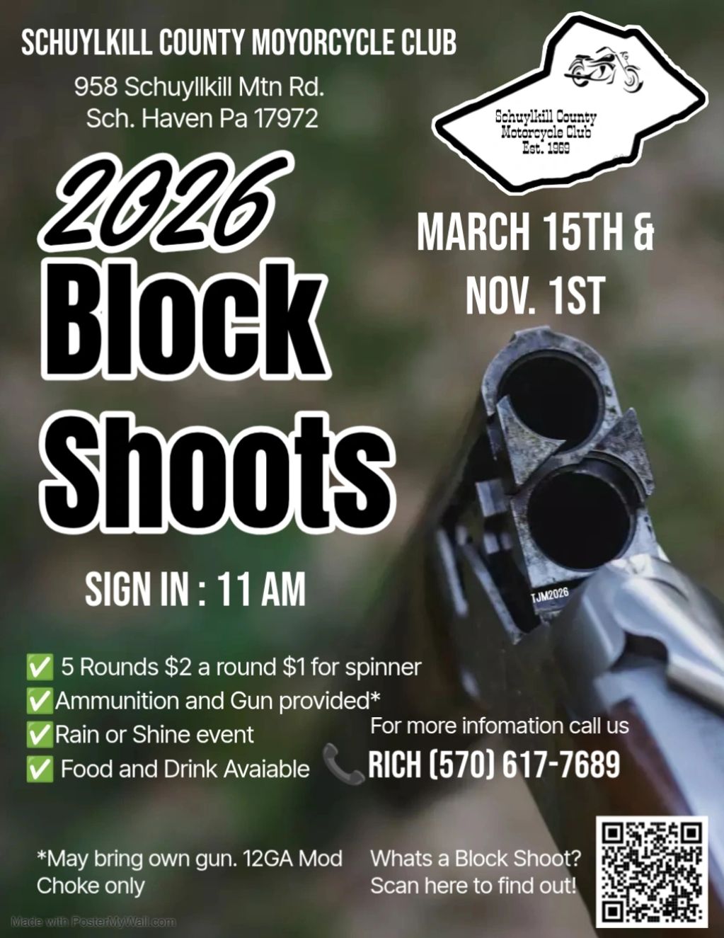 Our block shoots are held rain or shine. So bring your shot